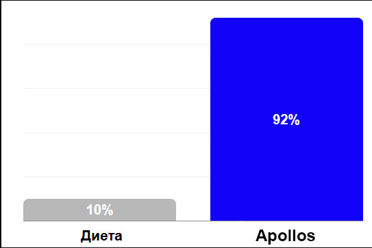 92% от участниците в проучването, които са приемали Apolloss, са загубили повече от 17 кг в рамките на два месеца, докато само 10% от хората са постигнали това чрез традиционни методи за отслабване.